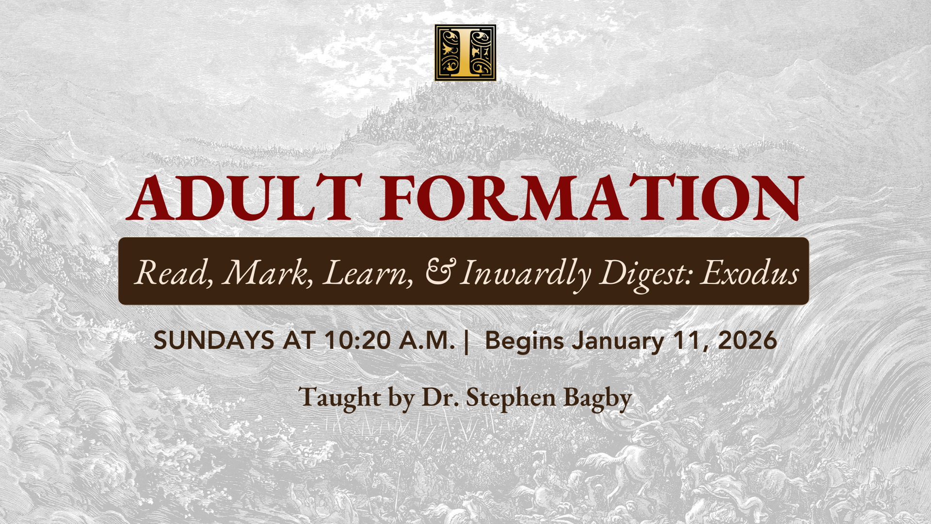 This spring, we’ll continue our study of the Bible with Read, Mark, Learn, and Inwardly Digest, led by Dr. Stephen Bagby. Together, we’ll grow in faith, build community, and deepen our walk with Christ. No registration is required—join us any Sunday.